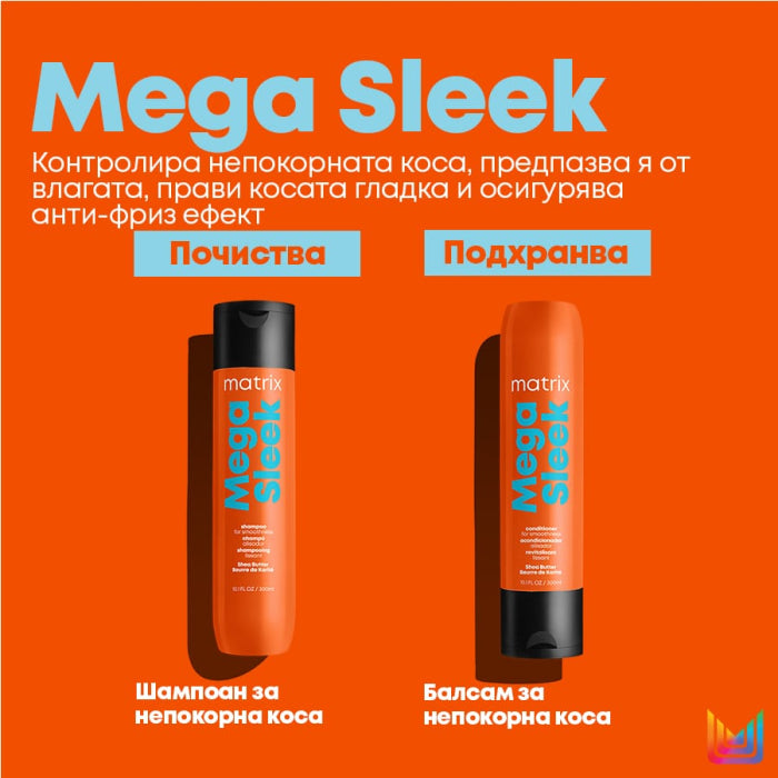 Балсам Matrix TR Mega Sleek – разплита, изглажда и омекотява хвърчащата и бухнала коса.