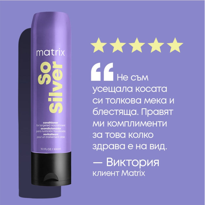 Matrix TR Color Obsessed So Silver е иновативен балсам специално разработен за нуждите на русите, изрусени и побелели коси!