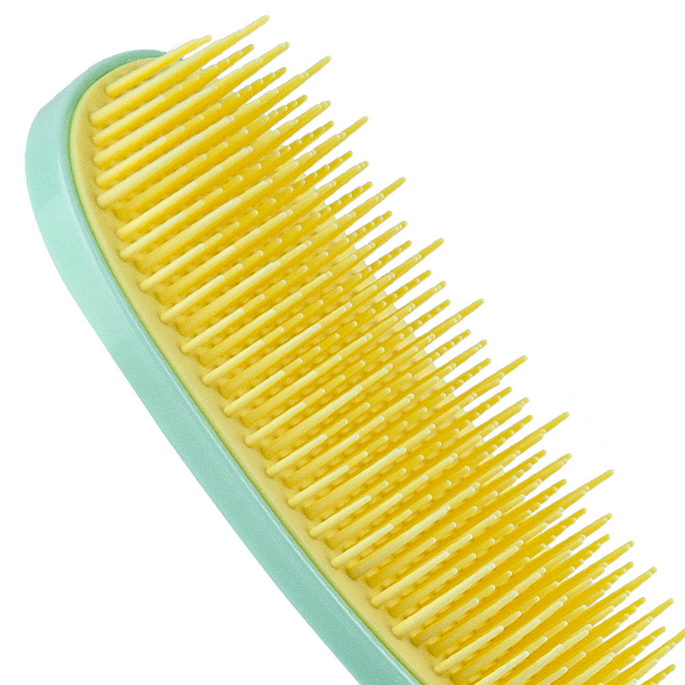 Дългите, гъвкави зъбци разплитат, премахват възли средните намаляват накъсването, а късите заглаждат косъма - за коса без хвърчащи краища.