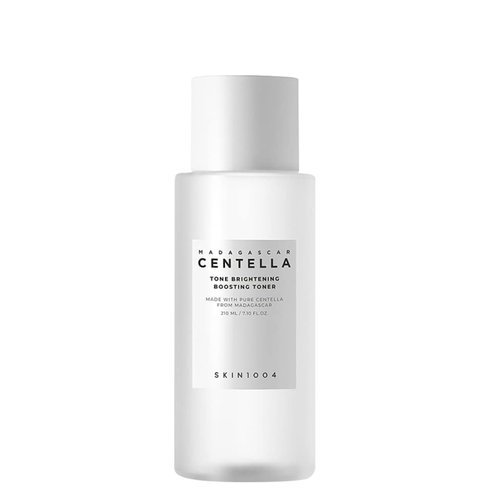 SKIN1004 Madagascar Centella Tone Brightening Boosting Toner е тонер с лека и водниста текстура, който доставя на кожата необходимата доза хидратация. Изсветлява и озарява кожата, благодарение на патентованата съставка MadeWhite™. Съдържа екстракт от азиатска центела, която активно регенерира, успокоява и укрепва кожната бариера, като едновременно с това помага за поддържането на оптимални нива на хидратация. Ниацинамидът помага за изравняването на тена, омекотява кожата и се бори активно с появата на фини линии, бръчки и уголемени пори. Съдържа екстракт от азиатска центела, ниацинамид, транексамова киселина и мадекасозид, благодарение на които кожата е регенерирана, успокоена, изсветлена и с подобрена хидратация. Екстрактът от японска кайсия премахва мъртвите кожни клетки и нежно ексфолира.