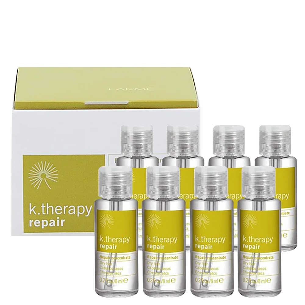 Концентратът за увредена коса LAKME k.therapy Repair Concentrate интензивно подхранва и хидратира косата в дълбочина. Придава копринена мекота и блясък, и улеснява разресването.