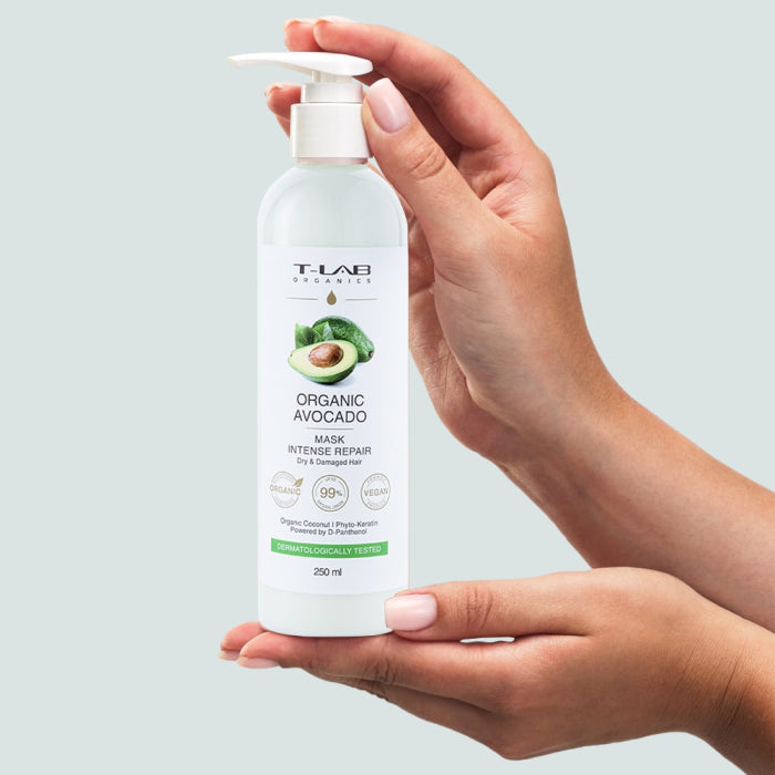 Маска за коса с авокадо за интензивно възстановяване T-LAB Organic Avocado Intense Repair Mask подхранва и хидратира косата, което я прави изключително подходяща за суха и изтощена коса. Формулата, богата на мастни киселини и витамини, прониква дълбоко в косъма, правейки косата неустоимо мека и гладка. Благодарение на своите натурални съставки, тя не само възстановява увредената коса, но и рехидратира косата. Съдържа 99% натурални съставки.