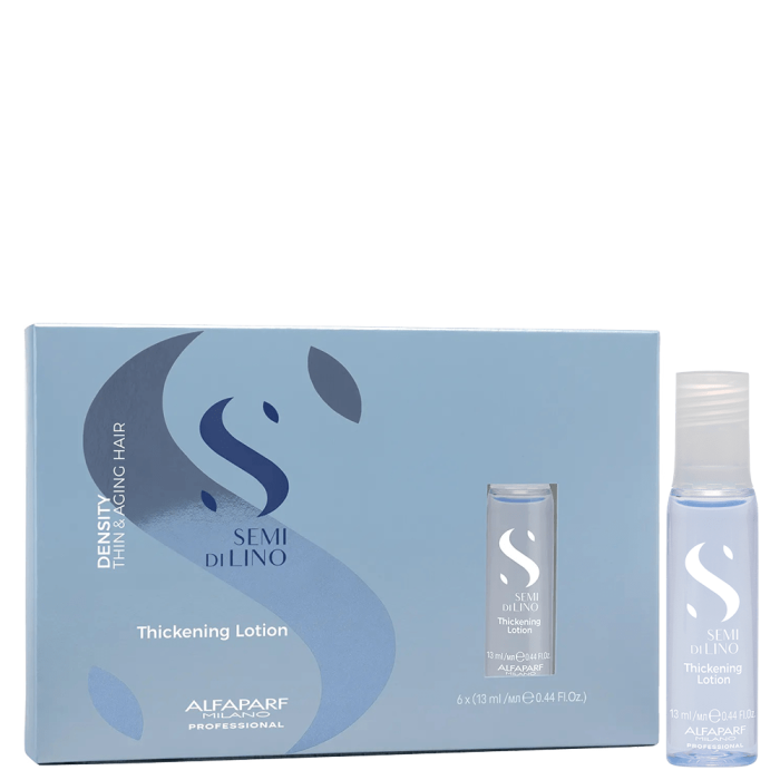 Alfaparf SEMI DI LINO Thickening Lotion е терапия за уплътняване на тънка и изтъняваща коса. Има силно и моментално подхранващо действие, като едновременно с това попълва косъма и го прави гладък и уплътнен.