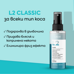 Двуфазен балсам без изплакване LAKME L2 Classic Instant Hair Conditioner подхранва и възстановява мекотата, блясъка и еластичността, без да утежнява и матира. С лека формула, която таргетира най-чувствителните зони на косъма, осигурявайки мигновено разплитане и лесно разресване. Елиминира фриз ефекта, намалява накъсването и цъфтежа и защитава косъма от външни увреждания. Резултатът е гладка, блестяща, копринено мека и лесна за разресване коса с огледален блясък. Подходящ за всеки тип коса.