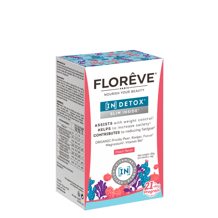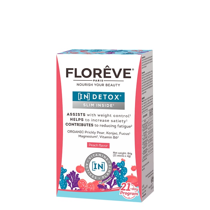 Хранителните добавки [IN] DETOX SLIM INSIDE, под формата на сашета за пиене, са формулирани с тройно действие за отслабване, намаляване на апетита и детокс на организма. Видими резултати в рамките на 7 дни - ефективност, доказана от клинични проучвания за IN DETOX - SLIM INSIDE. Екстрактът от бодлива круша засилва процесите на детоксикация и диуреза по естествен начин. Екстрактът от сух фикус намалява апетита и подпомага пречистването на чревния тракт. Екстрактът от конджак има свойството да абсорбира задържаната вода в организма като същвременно създава усещане за ситост през целия ден.