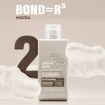 BOND=R³ действа с последователно приложение на 3 основни продукта за цялостно възстановяване - шампоан, маска за интензивно възстановяване и терапия без отмиване. Предлага и завършващ възстановяващ еликсир с масла от арган, марула и кафе за интензивен блясък.