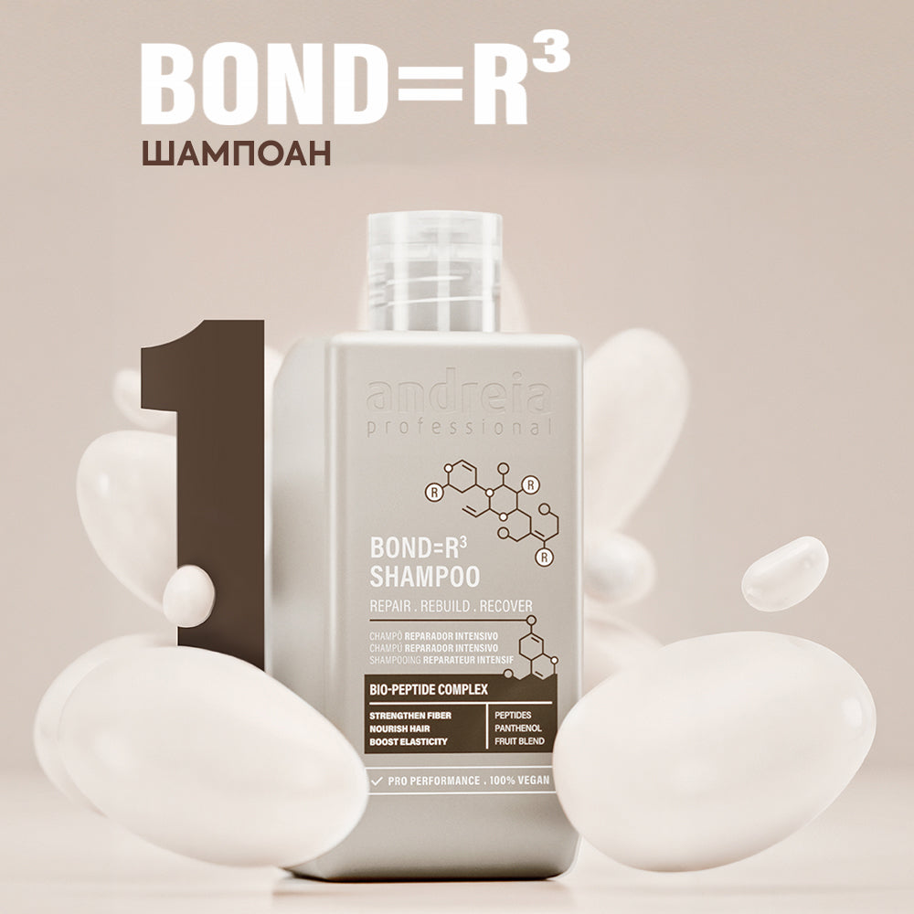 Шампоан за интензивно възстановяване на увредена коса BOND=R³ Intensive Repair Shampoo осигурява ефективно почистване, като същевременно запазва естествената хидратация на косата. Подпомага дълбоката регенерация на косъма отвътре и предпазва от изсушаване. Укрепва, подхранва и повишава еластичността на косъма.