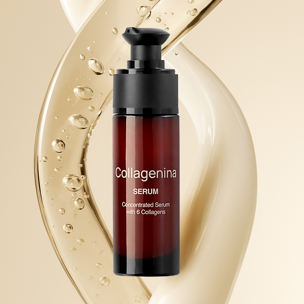 Стягащ и уплътняващ концентриран серум за лице с 6 вида колаген при леко отпусната кожа 1 Ниво Collagenina Concentrated Serum 1 Grade е концентрирана терапия за лице и шия под формата на серум. От 20-годишна възраст градивните елементи на кожата, по-специално колагеновите влакна, започват да се разграждат, причинявайки отпуснатост на кожата, свличане и фини линии. Генетиката, излагането на слънце и нездравословният начин на живот могат да ускорят стареенето на кожата.