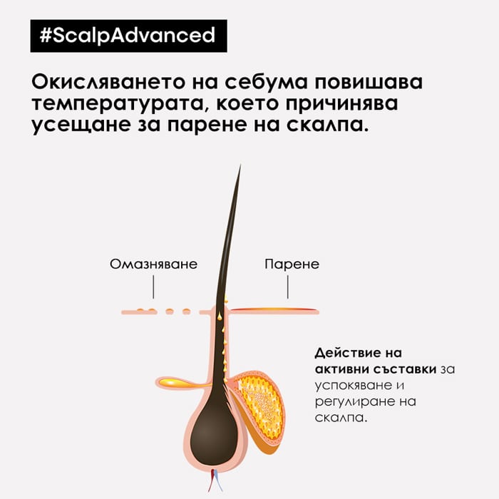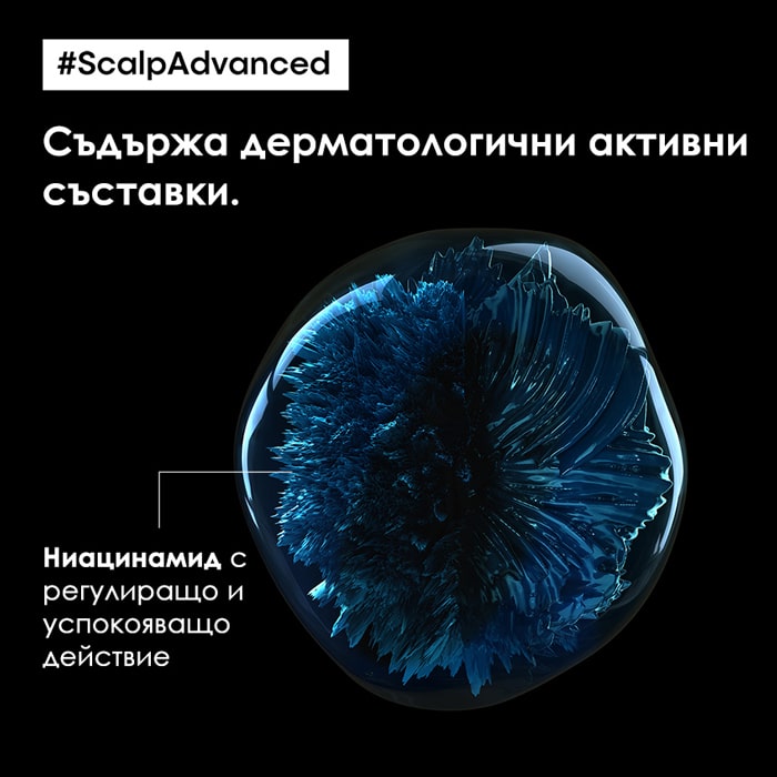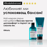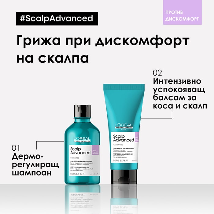 Интензивно успокояващ балсам за коса и скалп Scalp Advanced Anti-discomfort е интензивна успокояваща грижа, подходяща за чувствителен скалп. Моментално премахва дискомфорта в скалпа, без да утежнява косата. Продуктът е дерматологично тестван, създаден от професионалисти и одобрен от трима експерти по скалпа. Този лек гел е целенасочено формулиран с ниацинамид, витамин от семейството B3, известен със своите регулиращи и успокояващи сили. Нежно почиства, като същевременно успокоява чувствителния скалп.